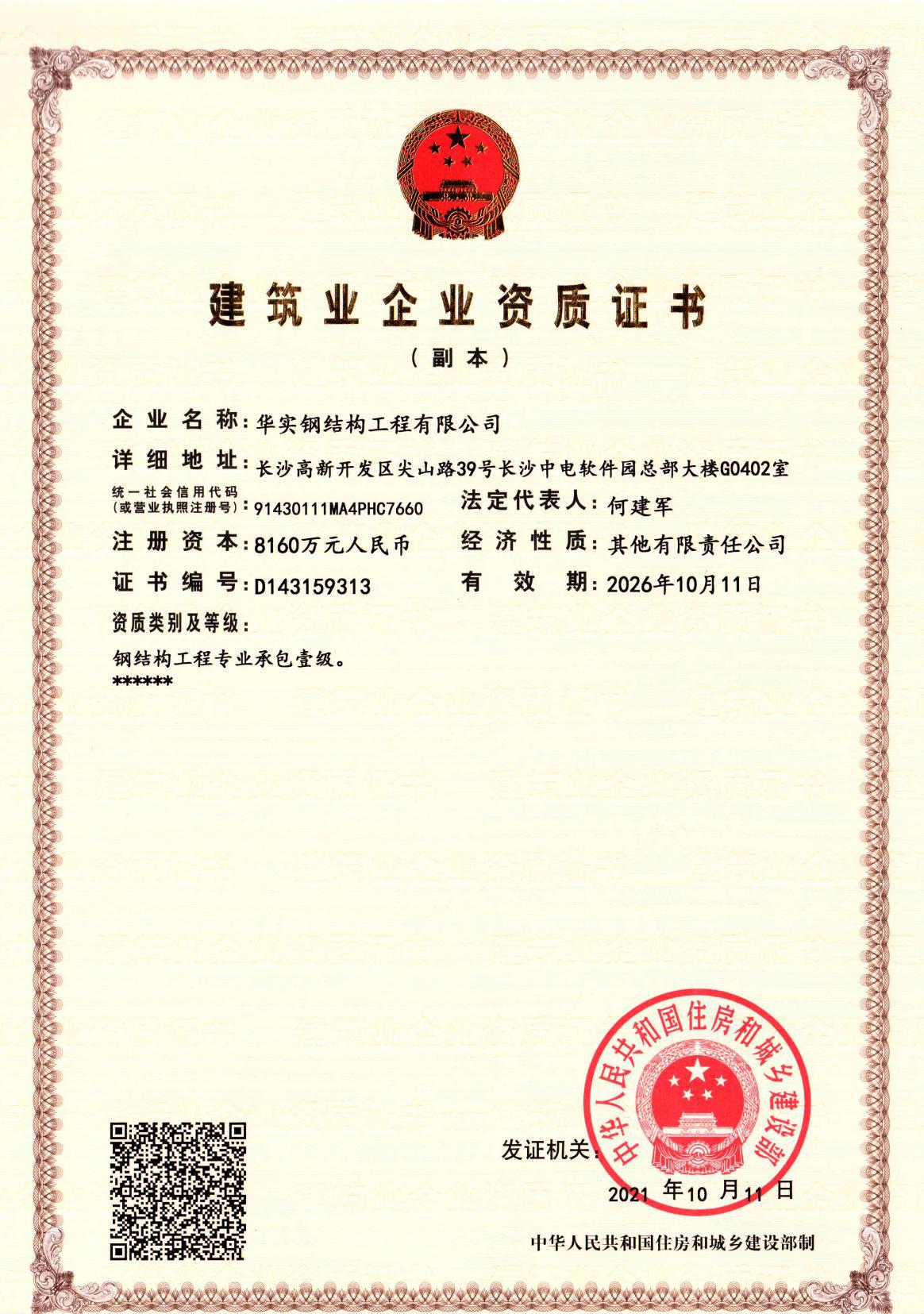 超過(guò)1000家的大型工程項(xiàng)目都選擇了華實(shí)鋼結(jié)構(gòu)資質(zhì)與榮譽(yù)